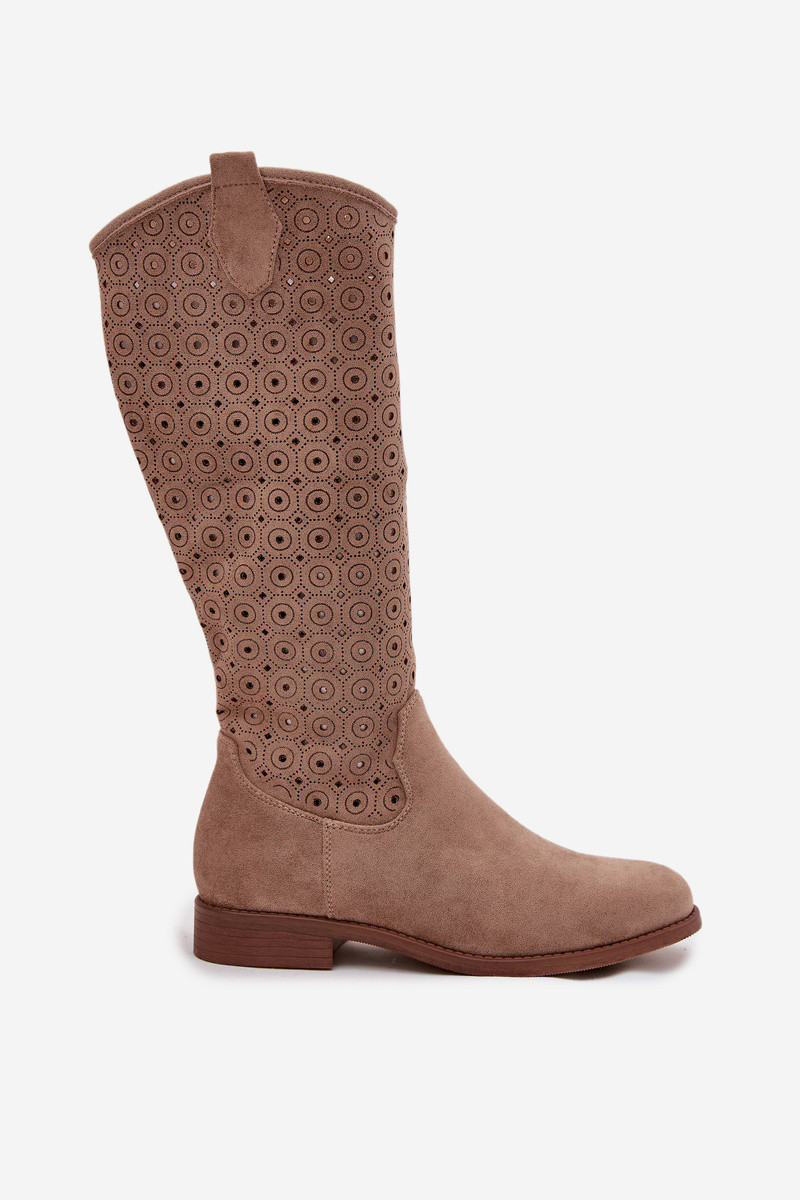 Kozaki Damskie Na Płaskim ObcasiewithAżurowym Wzorem S.Barski HY52-531 Beżowe