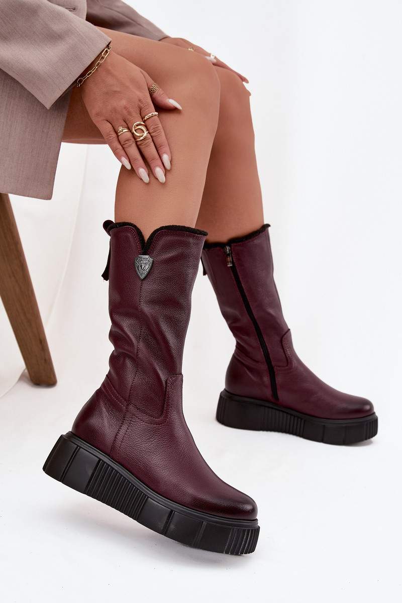 Damskie Skórzane KozakiwithWełną Beżowe Bayla