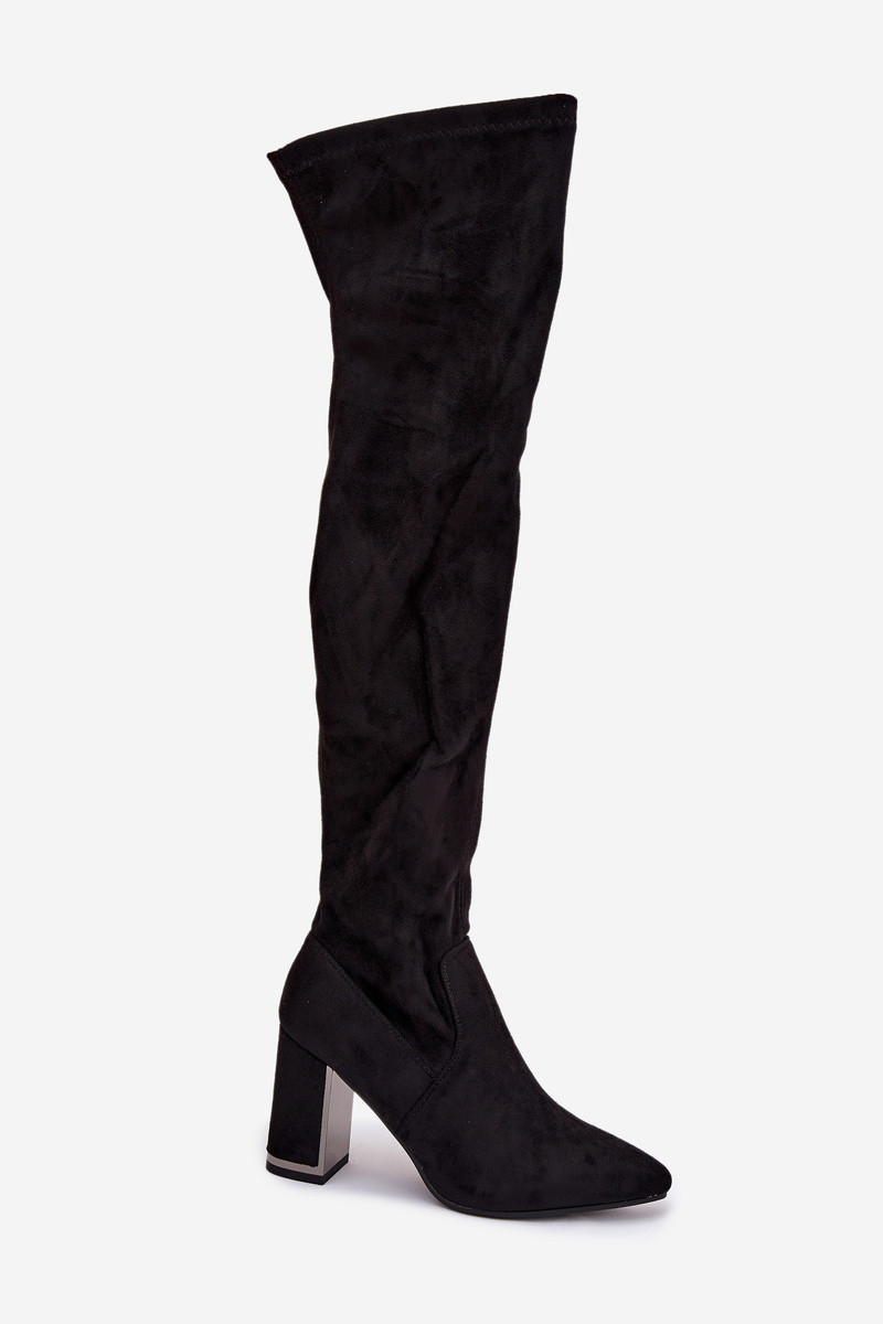 Kozaki Damskie Eko Zamszowe Za Kolano Na Słupku Czarne Thamine