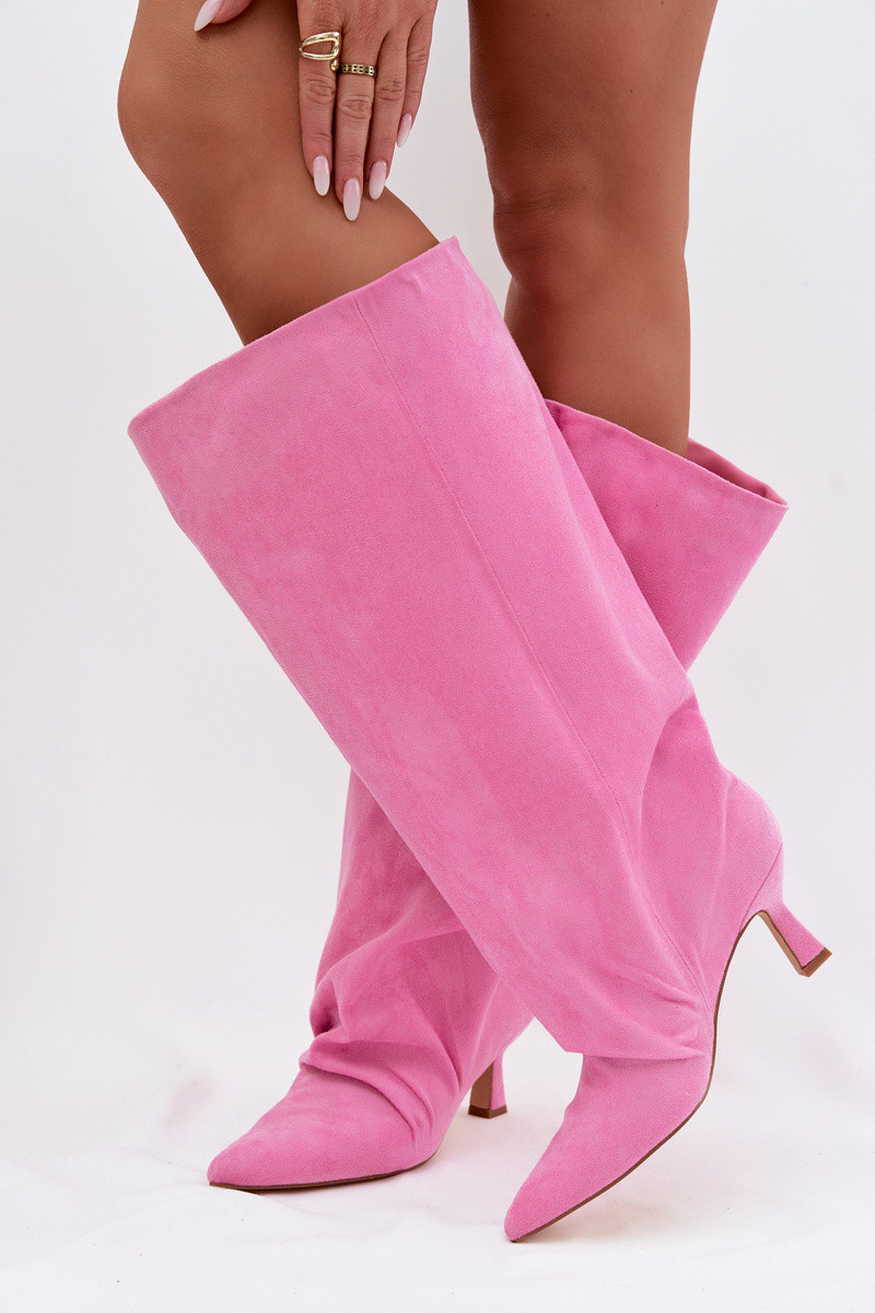KozakiwithSzeroką Cholewką I Marszczeniem Na Obcasie Różowe Harela