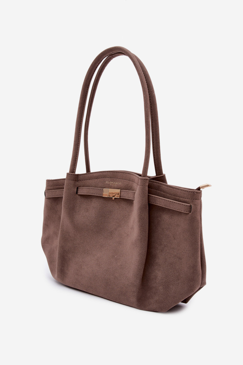 Torebka Typu ShopperwithEko Zamszu Ciemnobeżowa Elleea