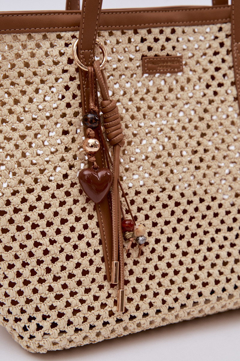 Pleciona Torebka Typu ShopperwithBrelokiem Beżowa Noella