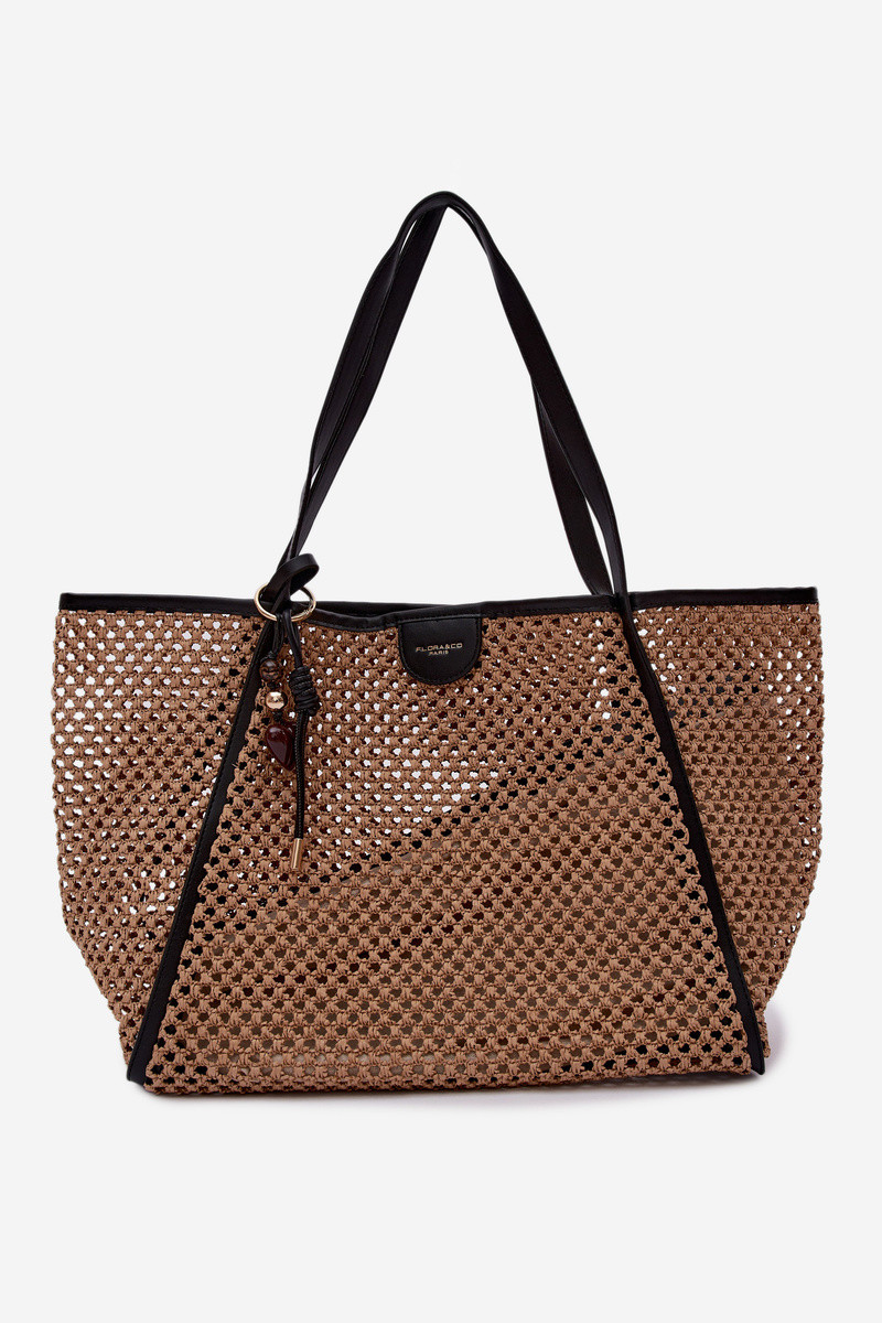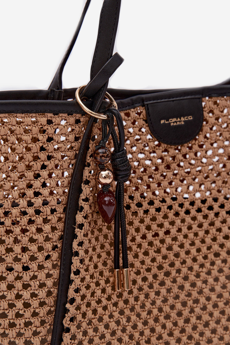 Pleciona Torebka Typu ShopperwithBrelokiem Duża Jasnobrązowa Mella