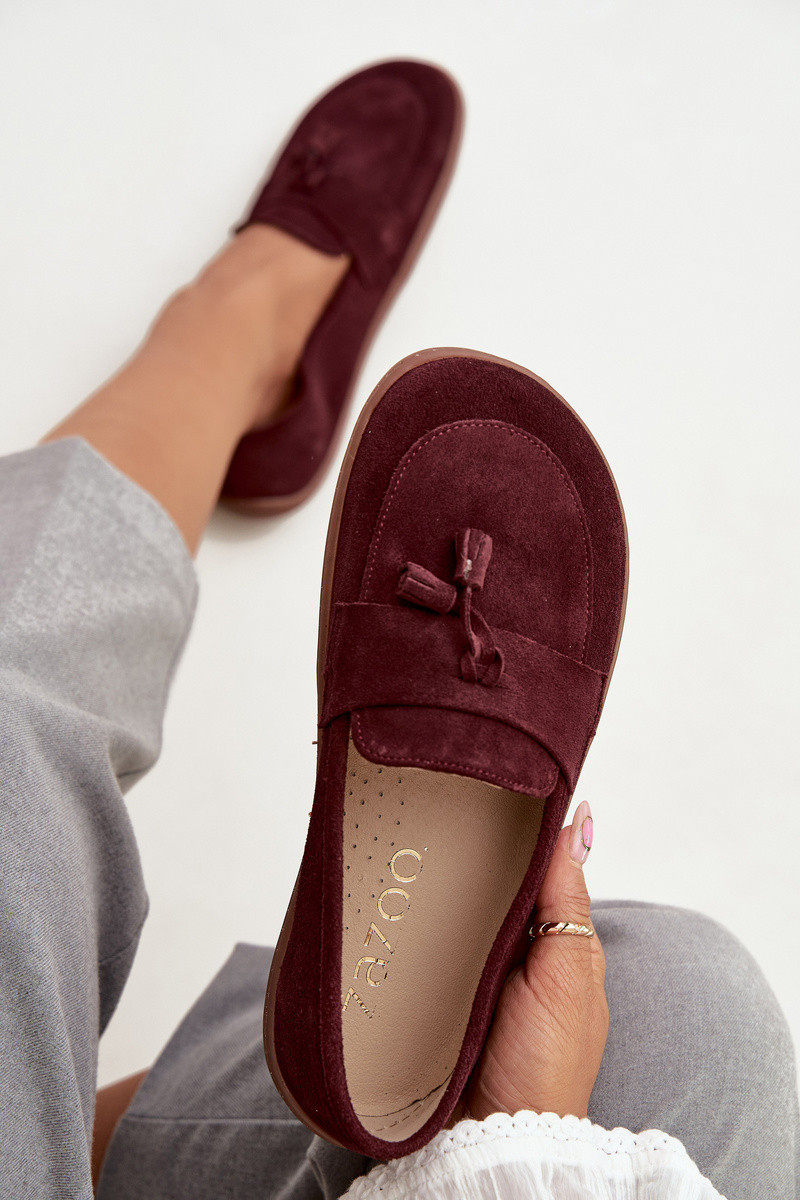Skórzane Zamszowe Mokasyny Typu Barefoot Zazoo 322 Bordowe