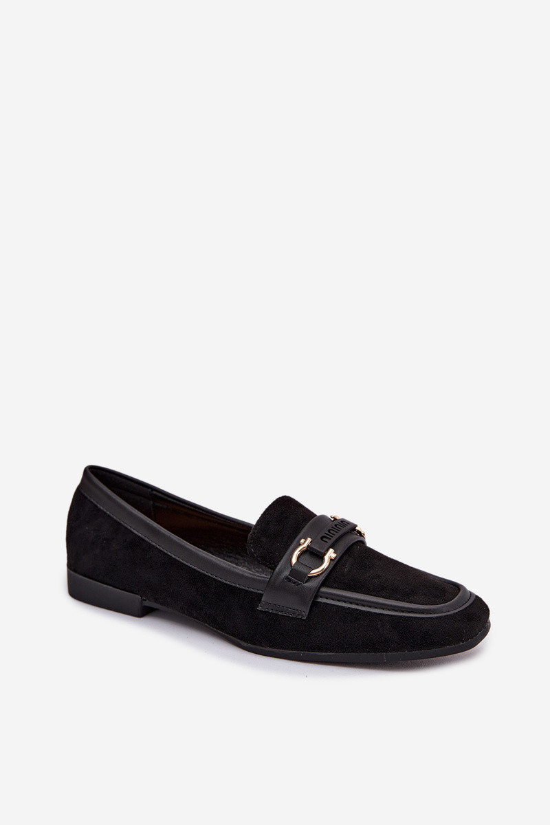 Mokasyny Loafersy DamskiewithOzdobnym Elementem Czarne Evelora