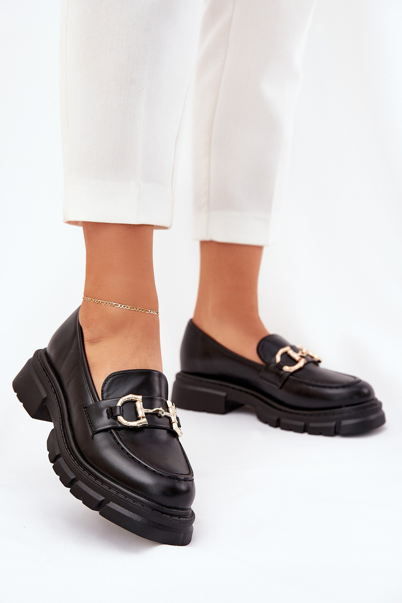 Mokasyny Damskie Eko Skórzane Ze Złotym Detalem Czarne Ravalissea