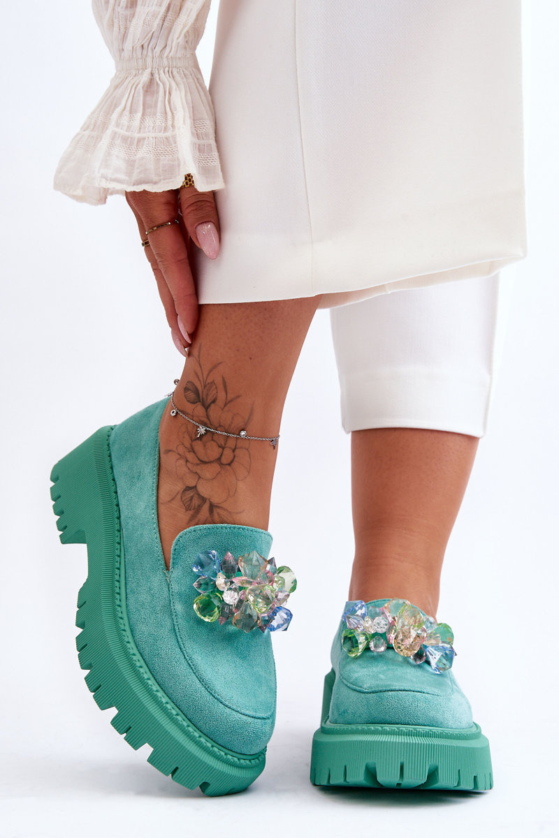 Damskie MokasynywithOzdobnymi Kryształami Zielone Avril