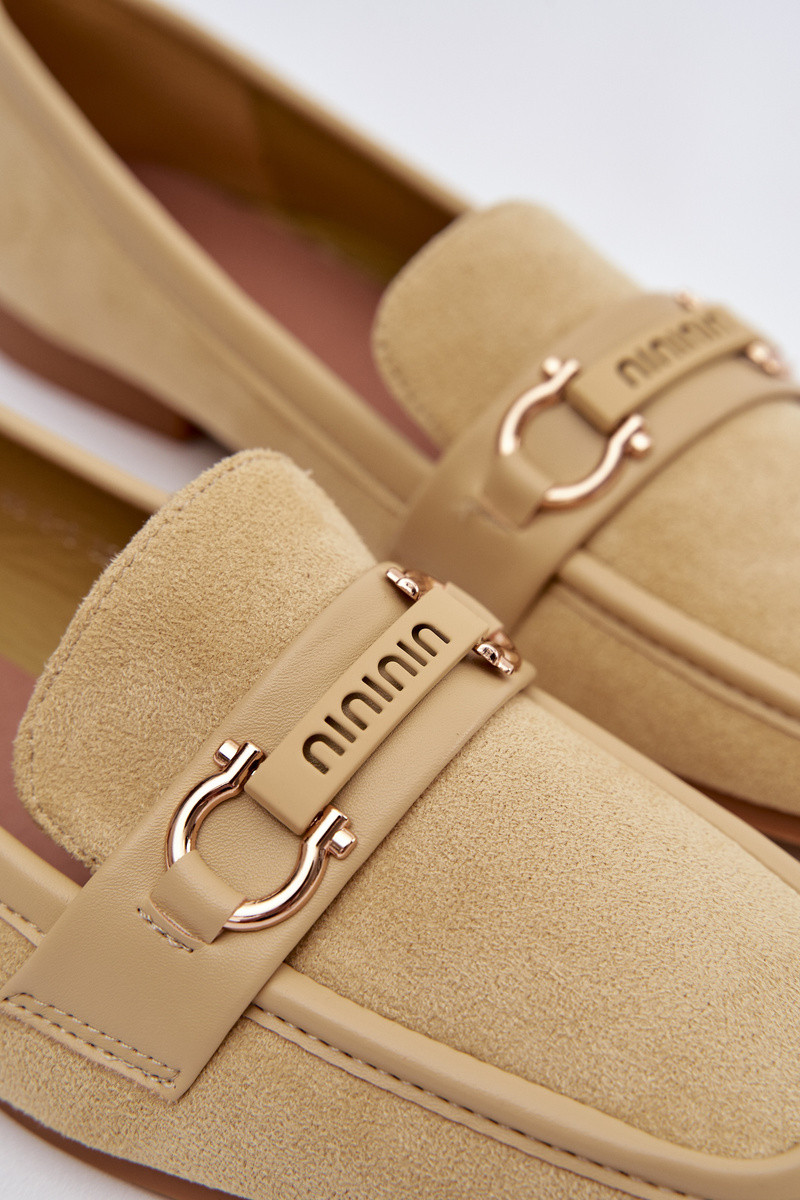Mokasyny Loafersy DamskiewithOzdobnym Elementem Panterka Beżowe Evelora