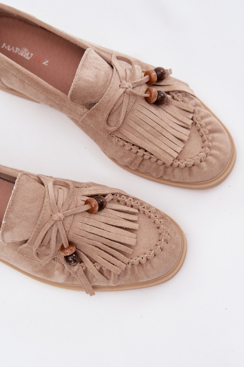 Mokasyny DamskiewithFrędzlami I Koralikami Beżowe Teressa