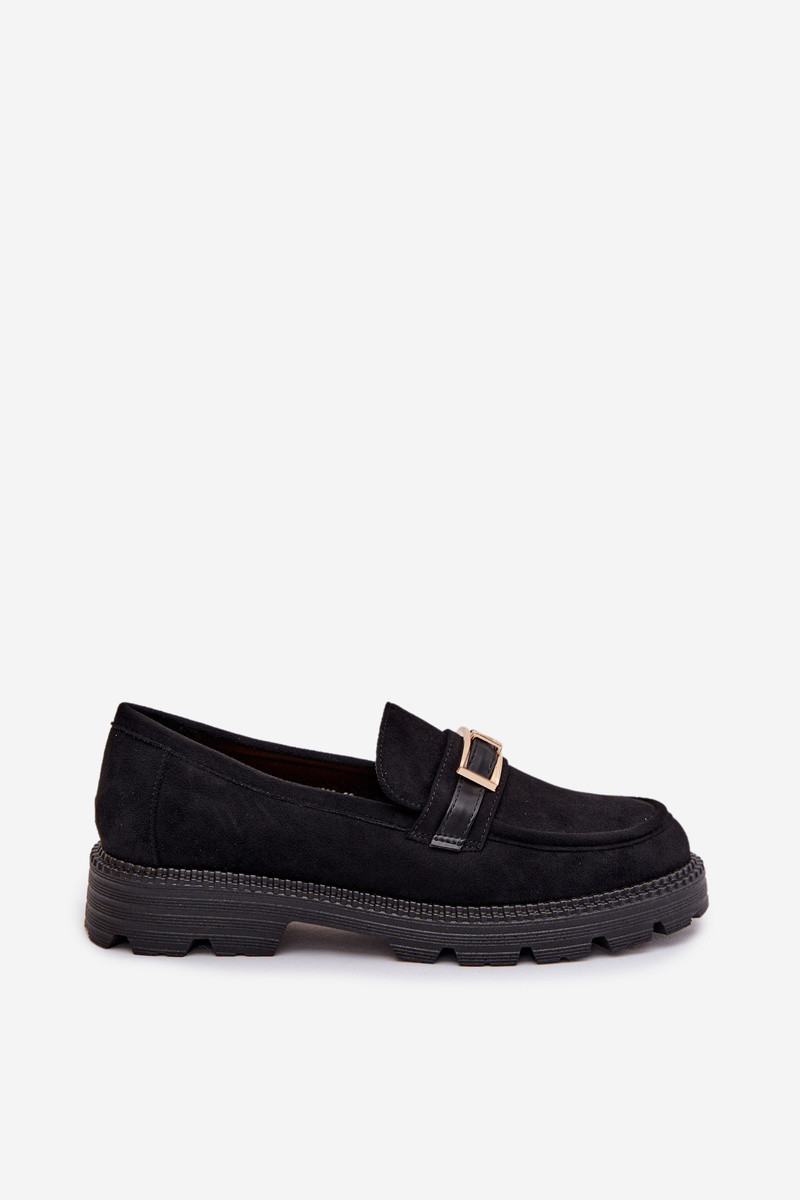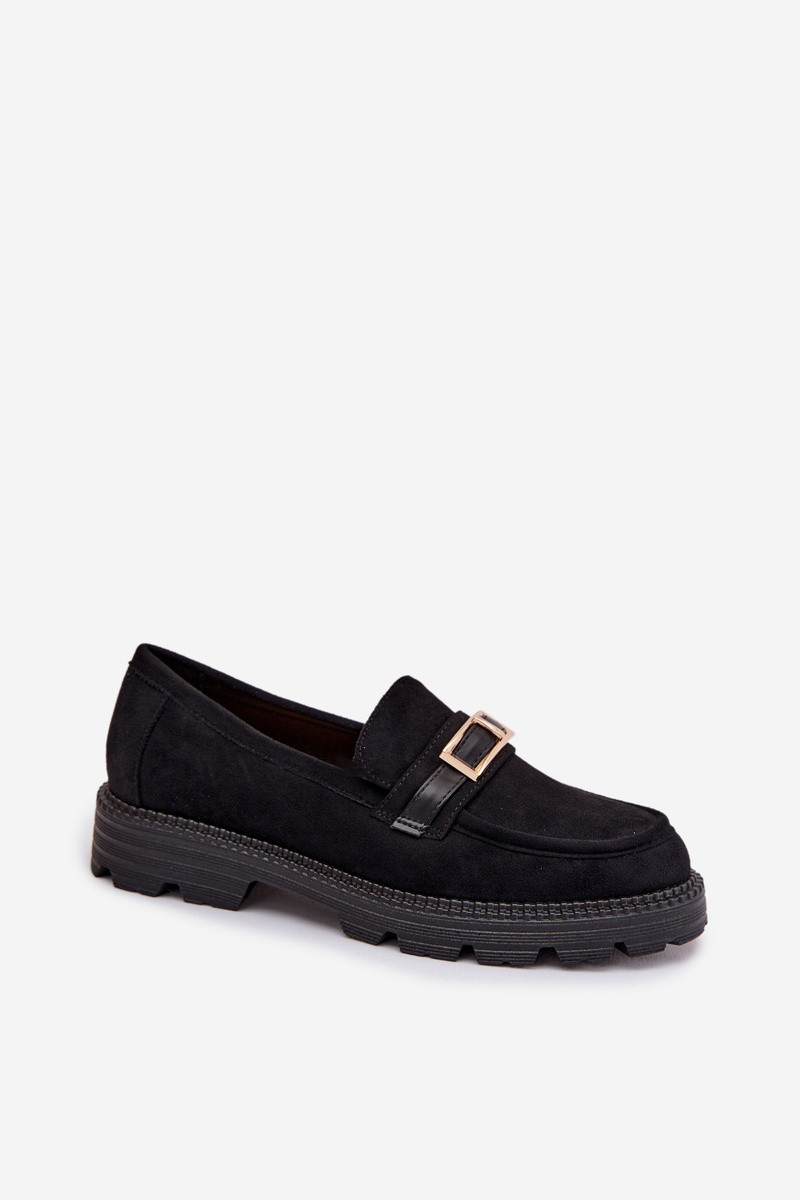 Mokasyny Damskie Ze Złotą Klamrą Czekoladowe Mirelva