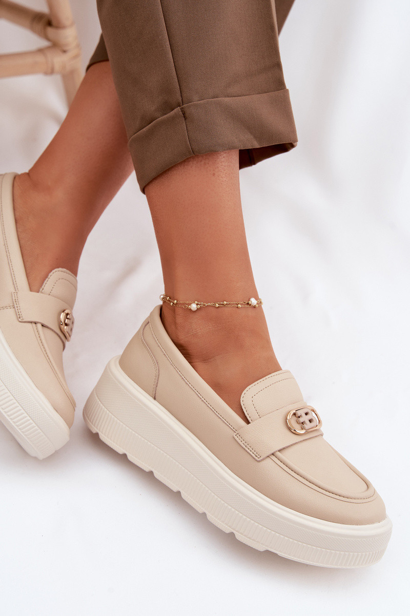 Skórzane Mokasyny Damskie Na Platformie Vinceza 39974 Czarne
