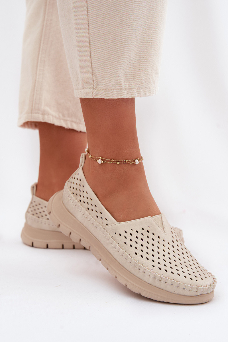 Ażurowe Lekkie Mokasyny Damskie Sergio Leone MK099H Beżowo-Złote