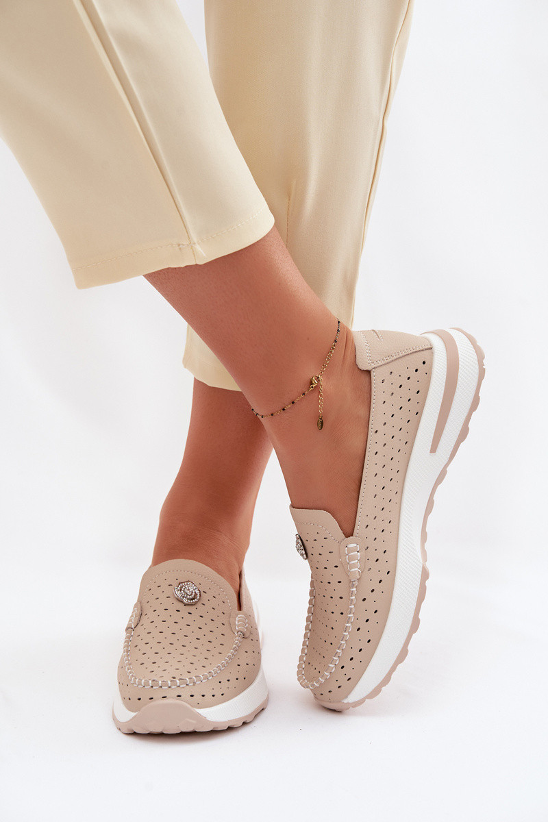 Ażurowe Mokasyny DamskiewithNaturalnej Skóry Beżowe Kemela