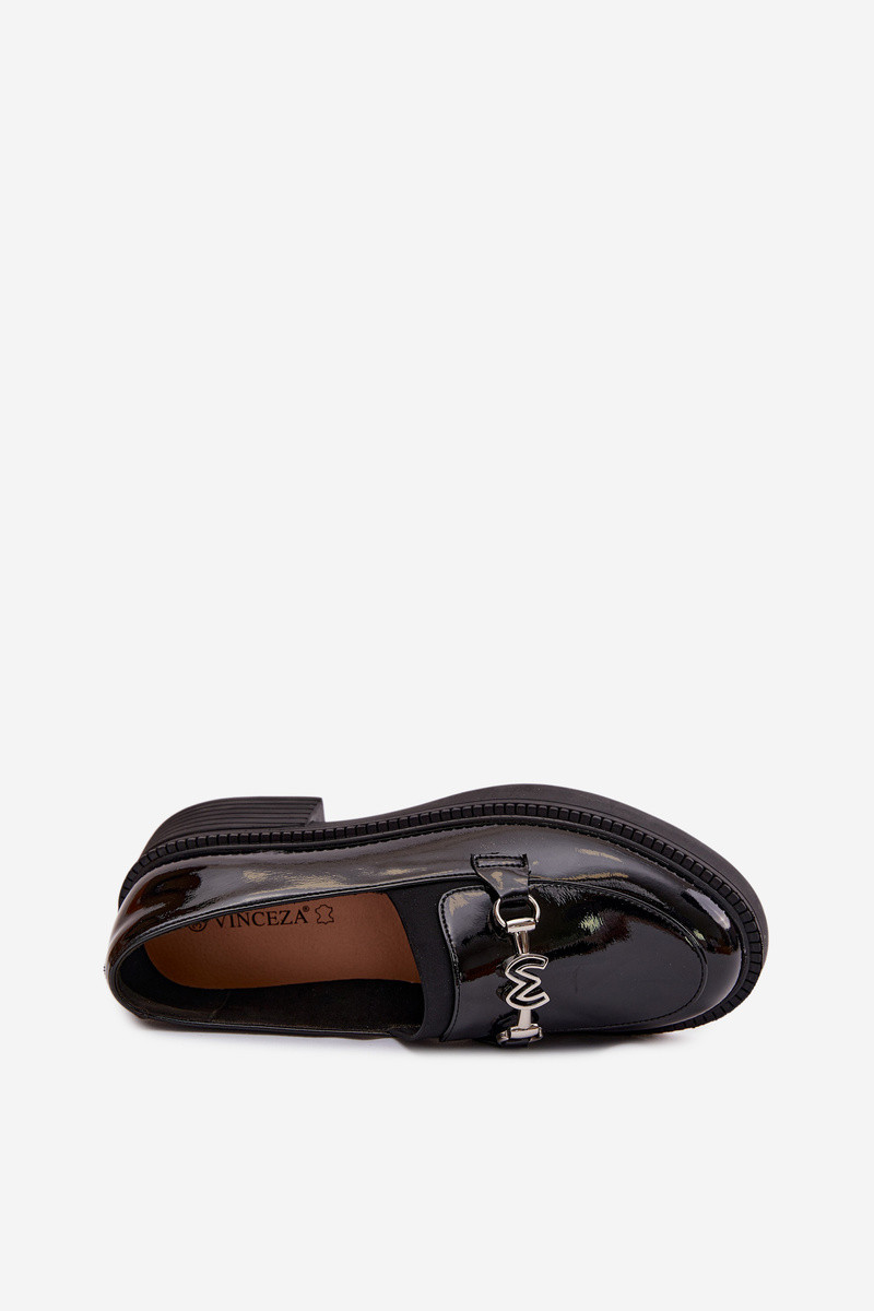 Skórzane Lakierowane Mokasyny DamskiewithOzdobnym Detalem Vinceza 39985 Czarne