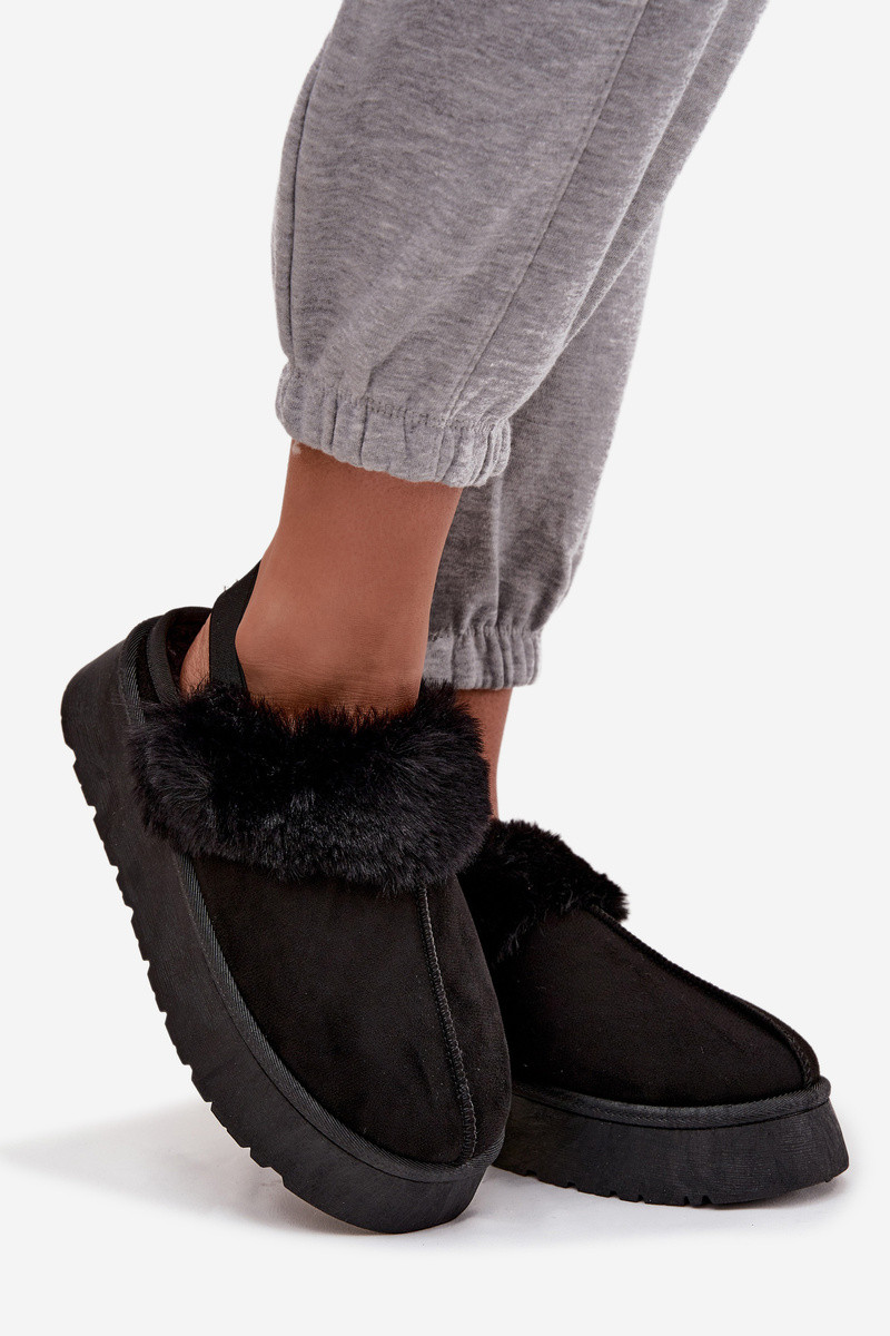 Kapcie Damskie Na PlatformiewithFuterkiem Czarne Linaris