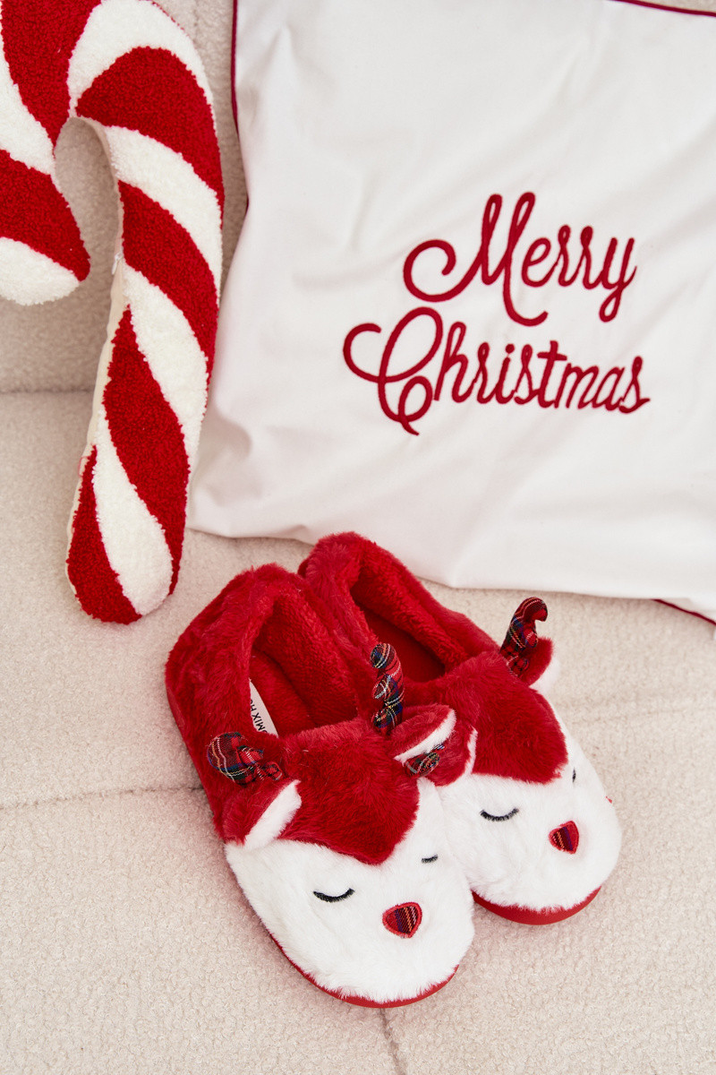 Kapcie Świąteczne DamskiewithMotywem Renifera Futrzane Czerwone Orsella