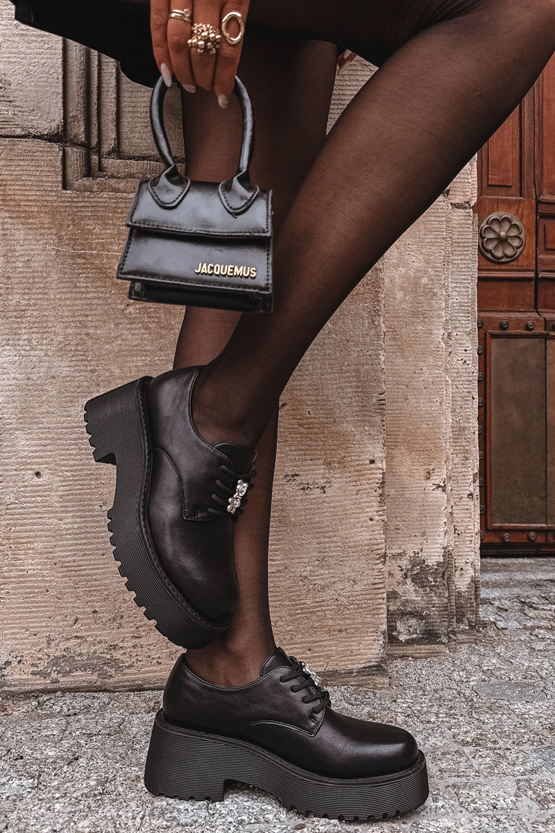 Półbuty DamskiewithPrzypinką Eko Skórzane Czarne Laurea