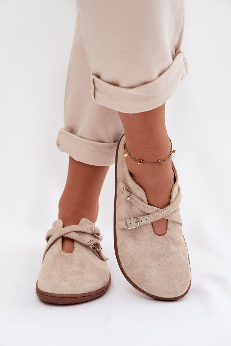 Skórzane Zamszowe Półbuty Barefoot DamskiewithPaskami Zazoo N1271 Jasnobeżowe