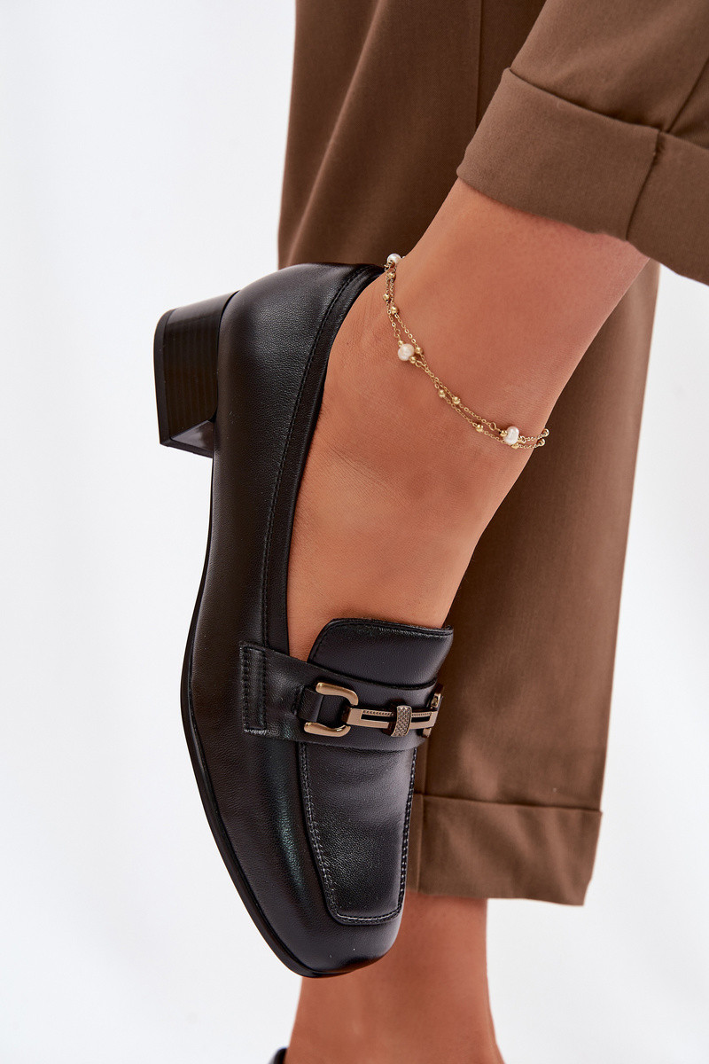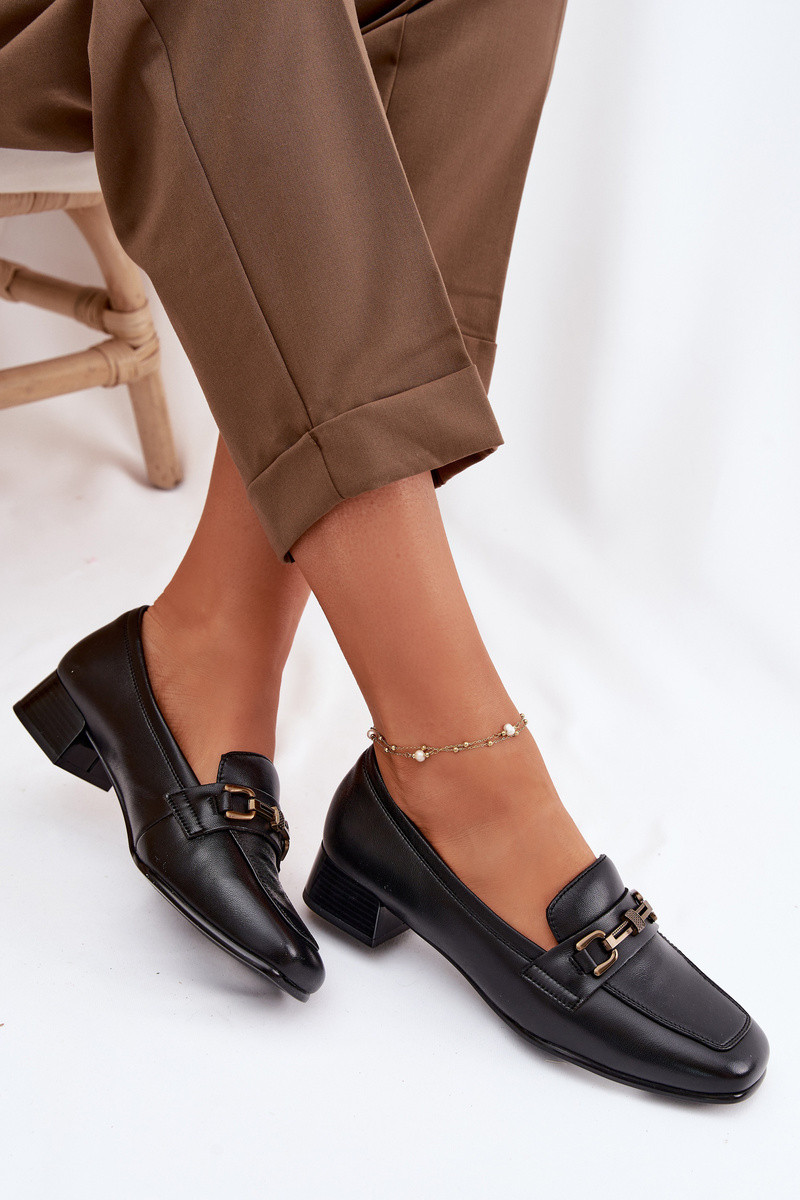 Skórzane Półbuty Damskie Na KlockuwithOzdobą Vinceza 39978 Brązowe