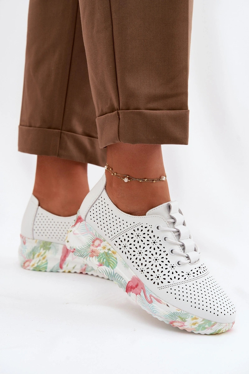 Skórzane Ażurowe Półbuty Damskie Białe Telina