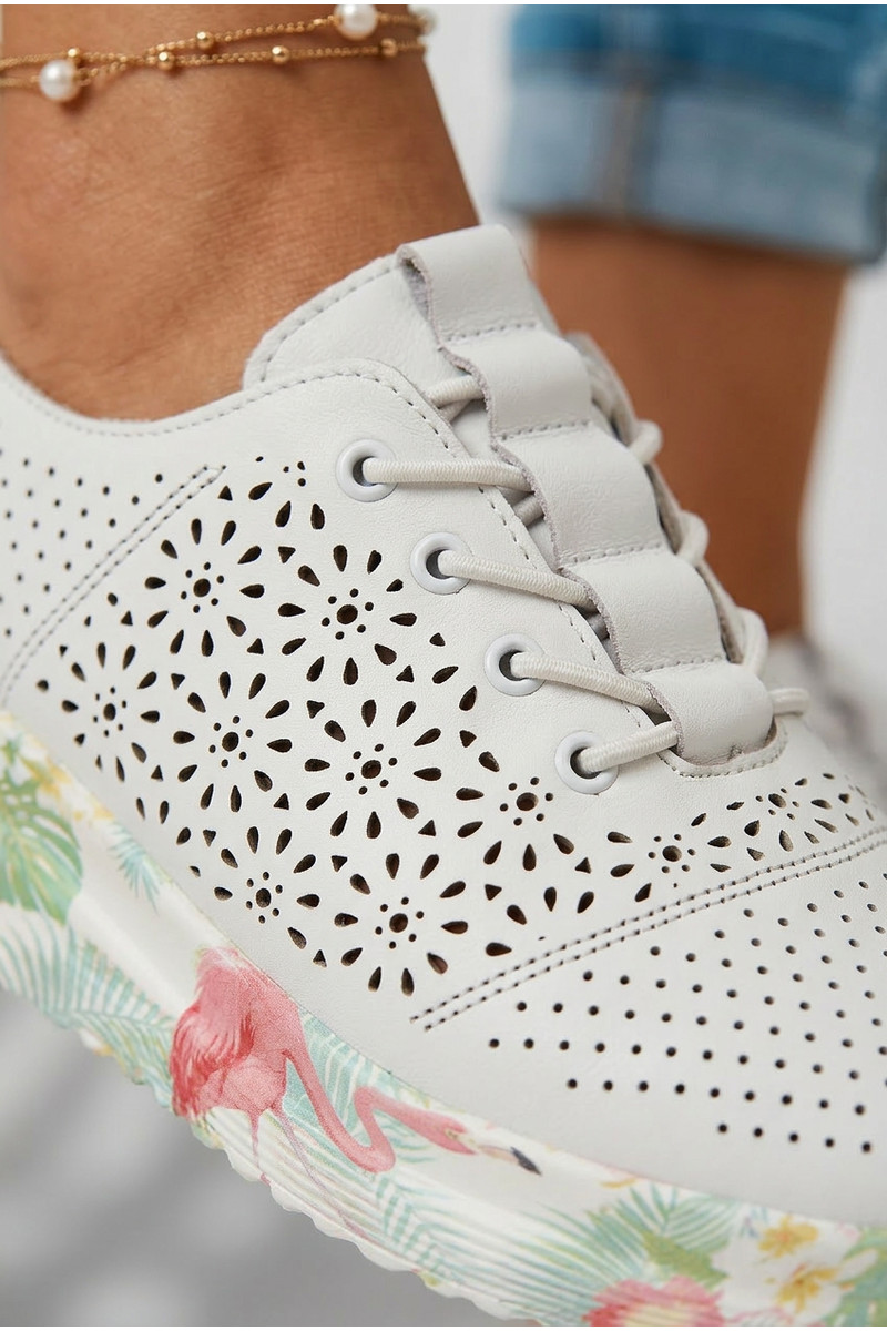 Skórzane Ażurowe Półbuty Damskie Białe Telina