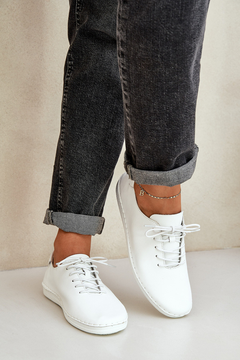 Sznurowane PółbutywithNaturalnej Skóry D&A LR51-645 Białe