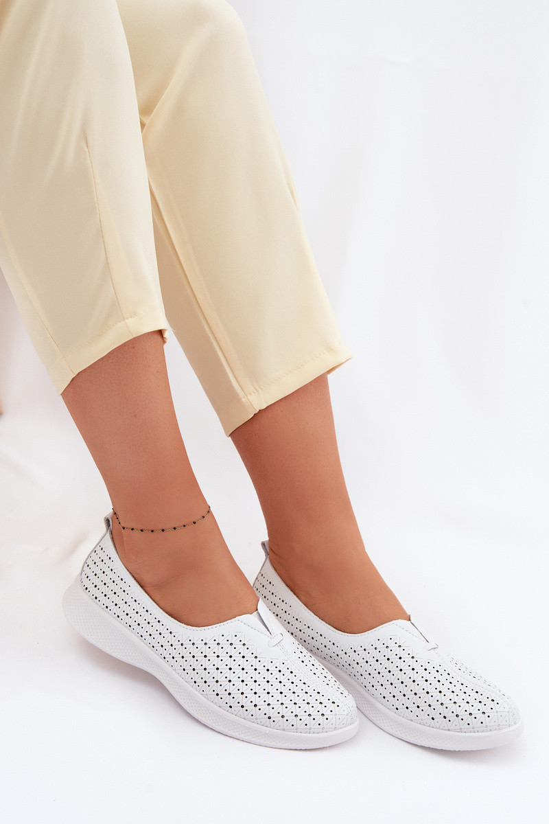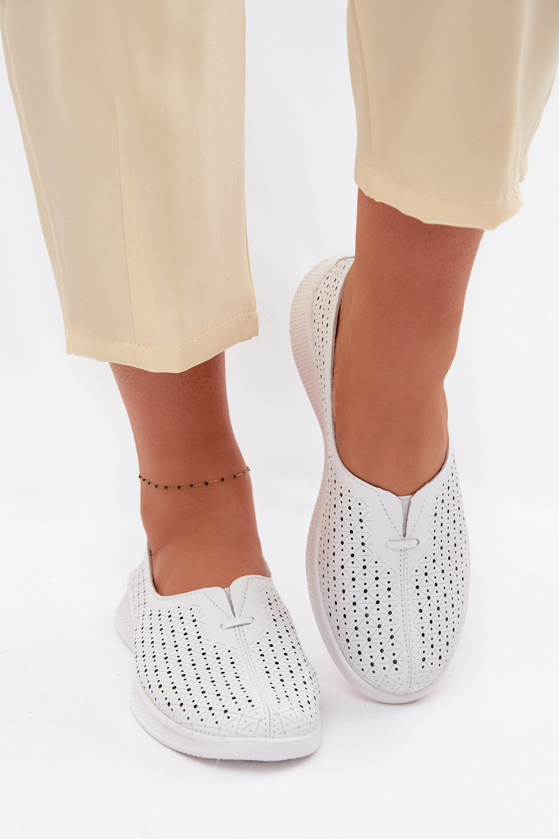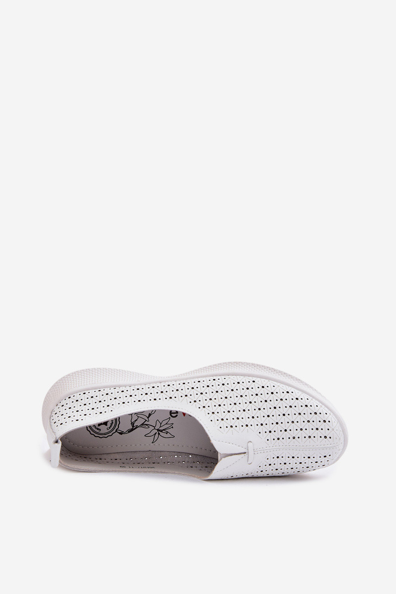 Skórzane Ażurowe Półbuty Damskie Białe Eliva