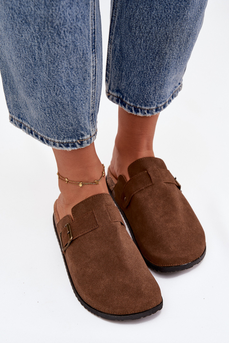Klapki Chodaki Damskie i Na PlatformiewithKlamrą Brązowe Selio