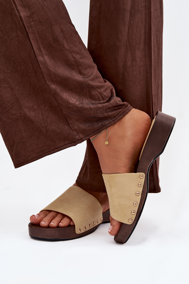 Klapki Damskie Ze Złotymi Ćwiekami Żółte Ferinna