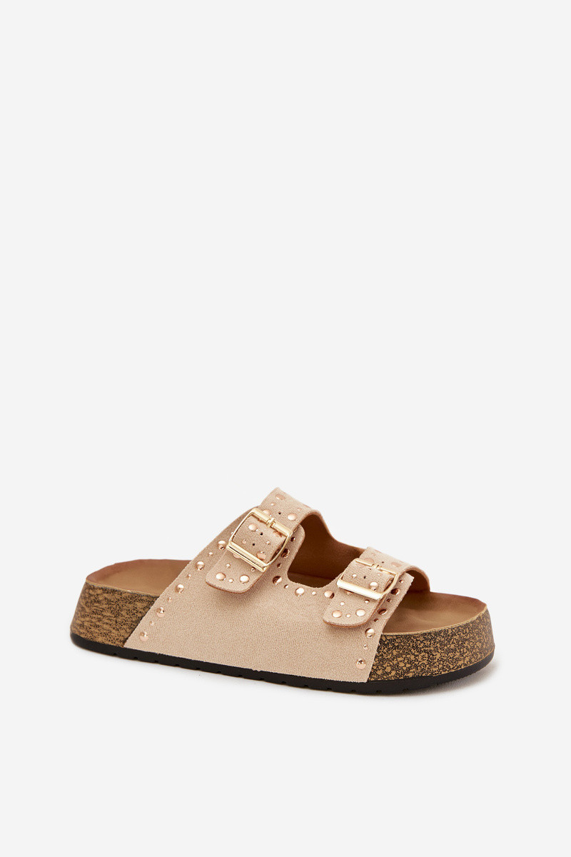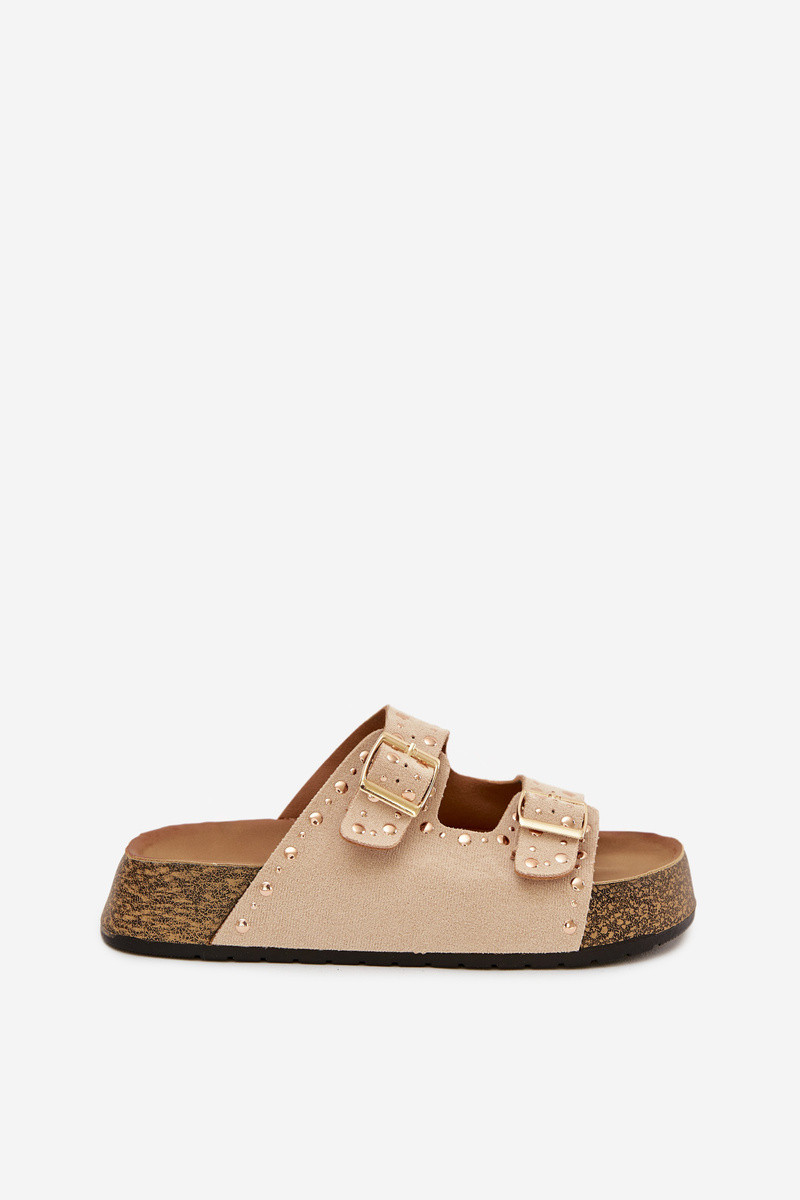 Klapki Damskie Ze Złotymi Klamrami I Ćwiekami Czarne Tervina
