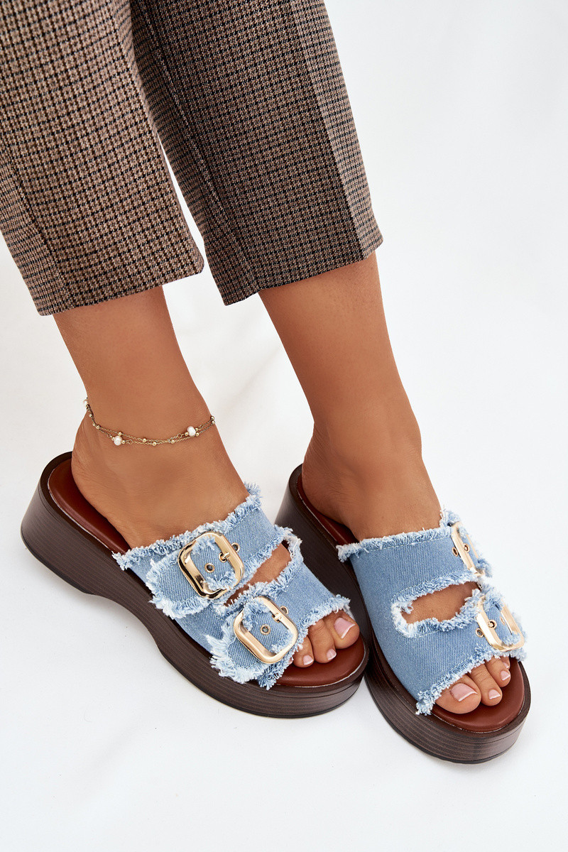Klapki Damskie Na Platformie Ze Złotymi Klamrami Czekoladowe Renelisse