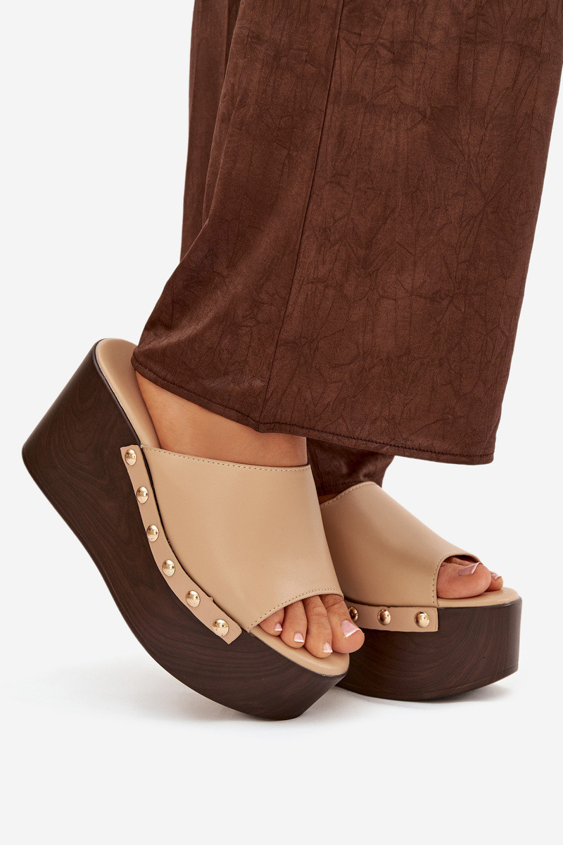 Klapki Damskie Na KoturniewithĆwiekami Beżowe Mareline