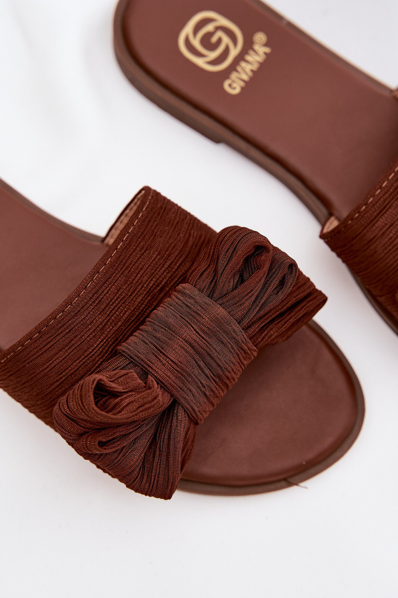 Klapki Damskie Na Płaskim ObcasiewithKokardą Brązowe Amivelle
