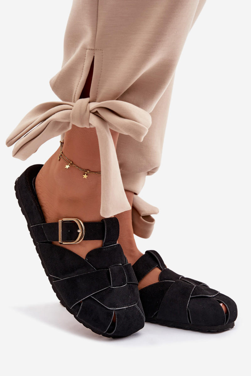 Klapki Damskie MulewithPaskami I Złotą Klamrą Beżowe Ganelle