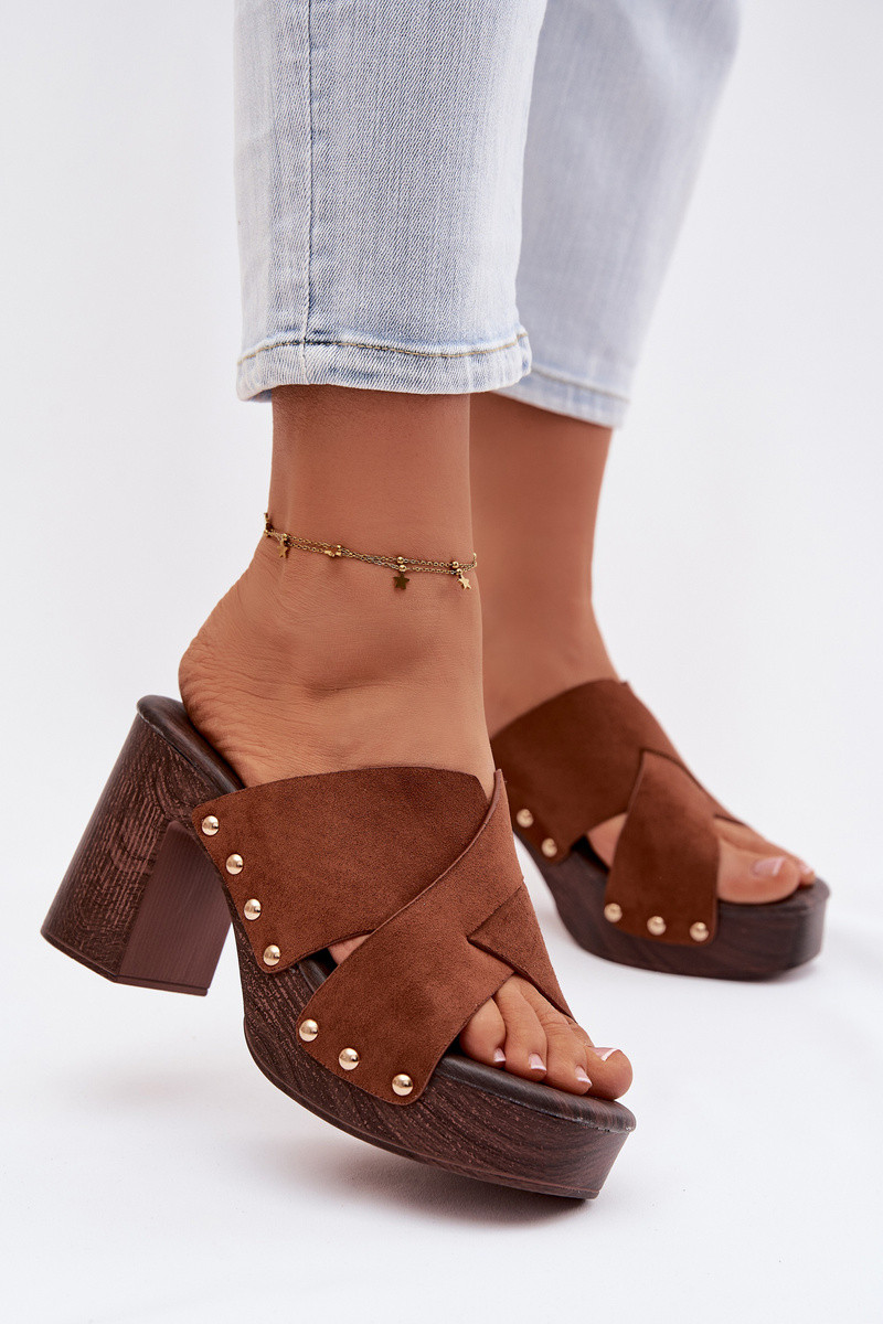 Klapki Damskie Na Słupku Ze Złotymi Ćwiekami Camel Nerelle