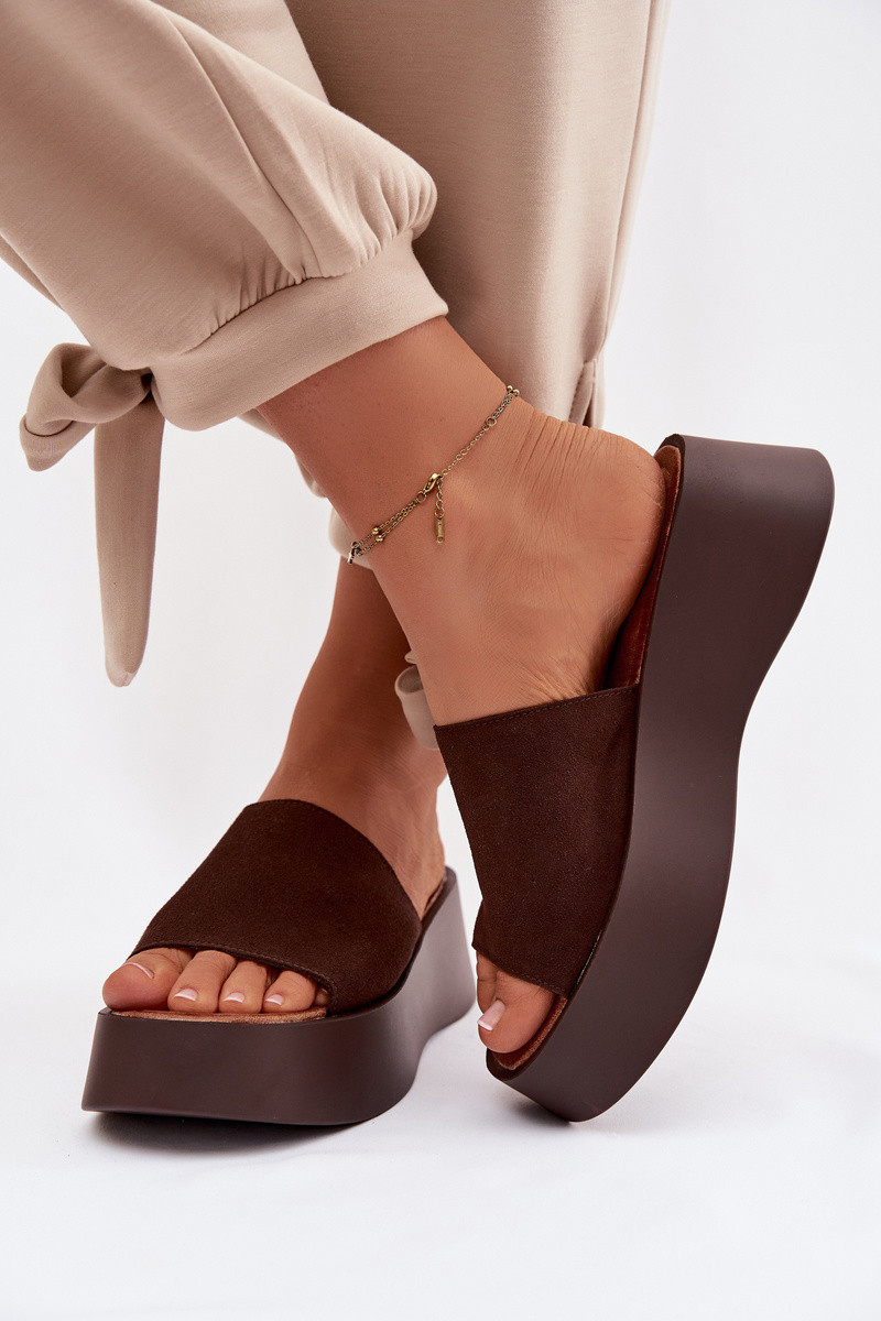 Klapki Damskie Na Platformie Ciemnobeżowe Liorisse