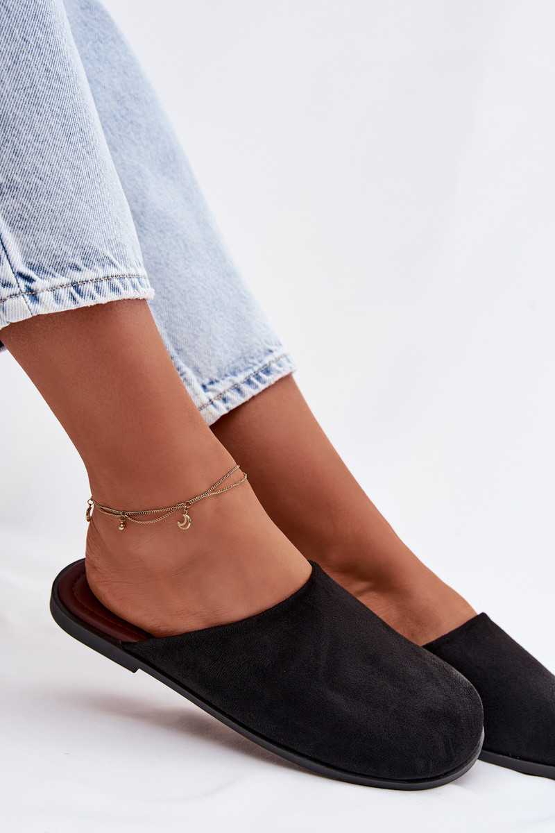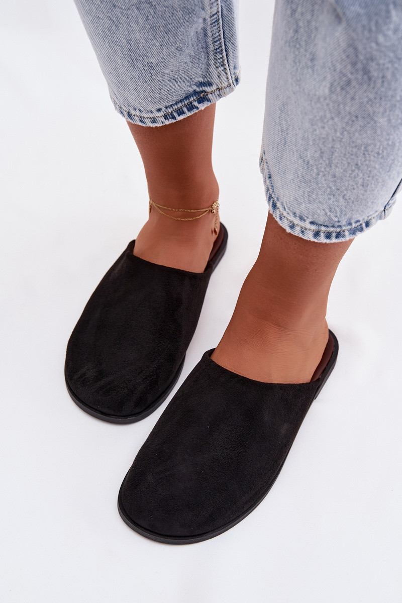 Klapki Damskie PłaskiewithEko Zamszu Czarne Veronelle