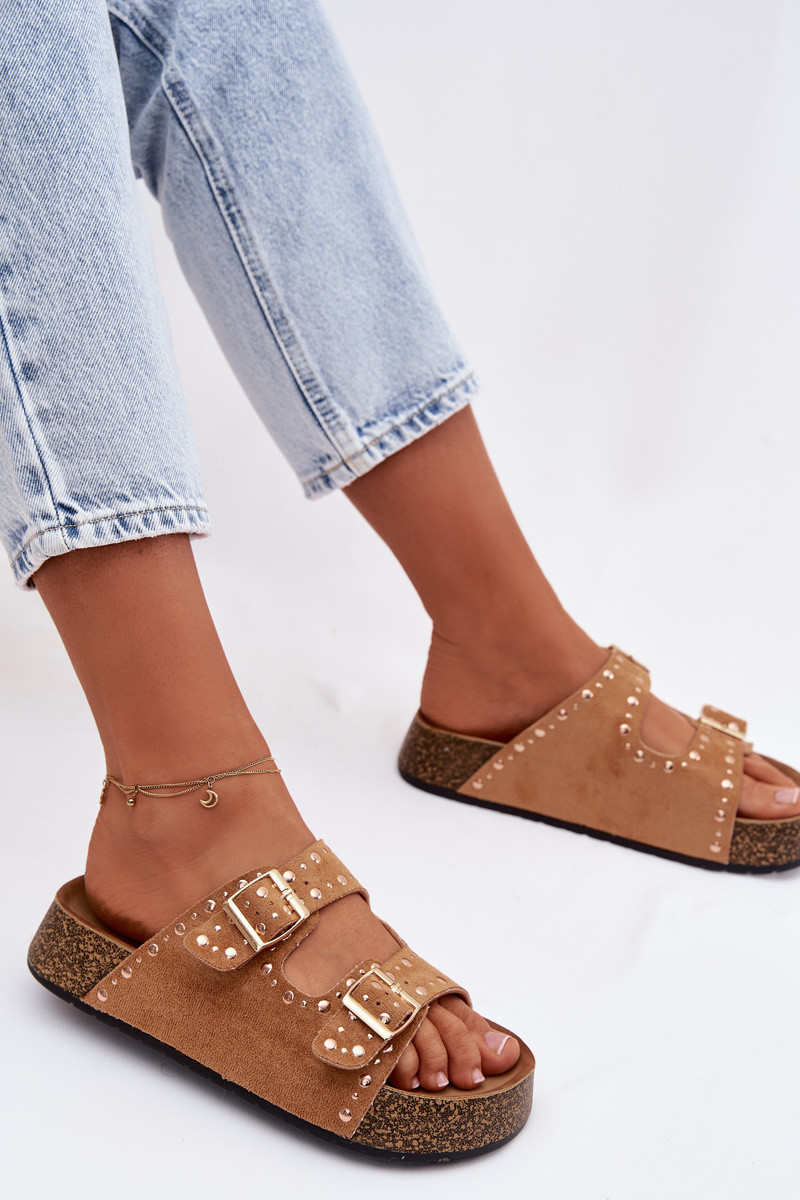 Klapki Damskie Ze Złotymi Klamrami I Ćwiekami Czarne Tervina