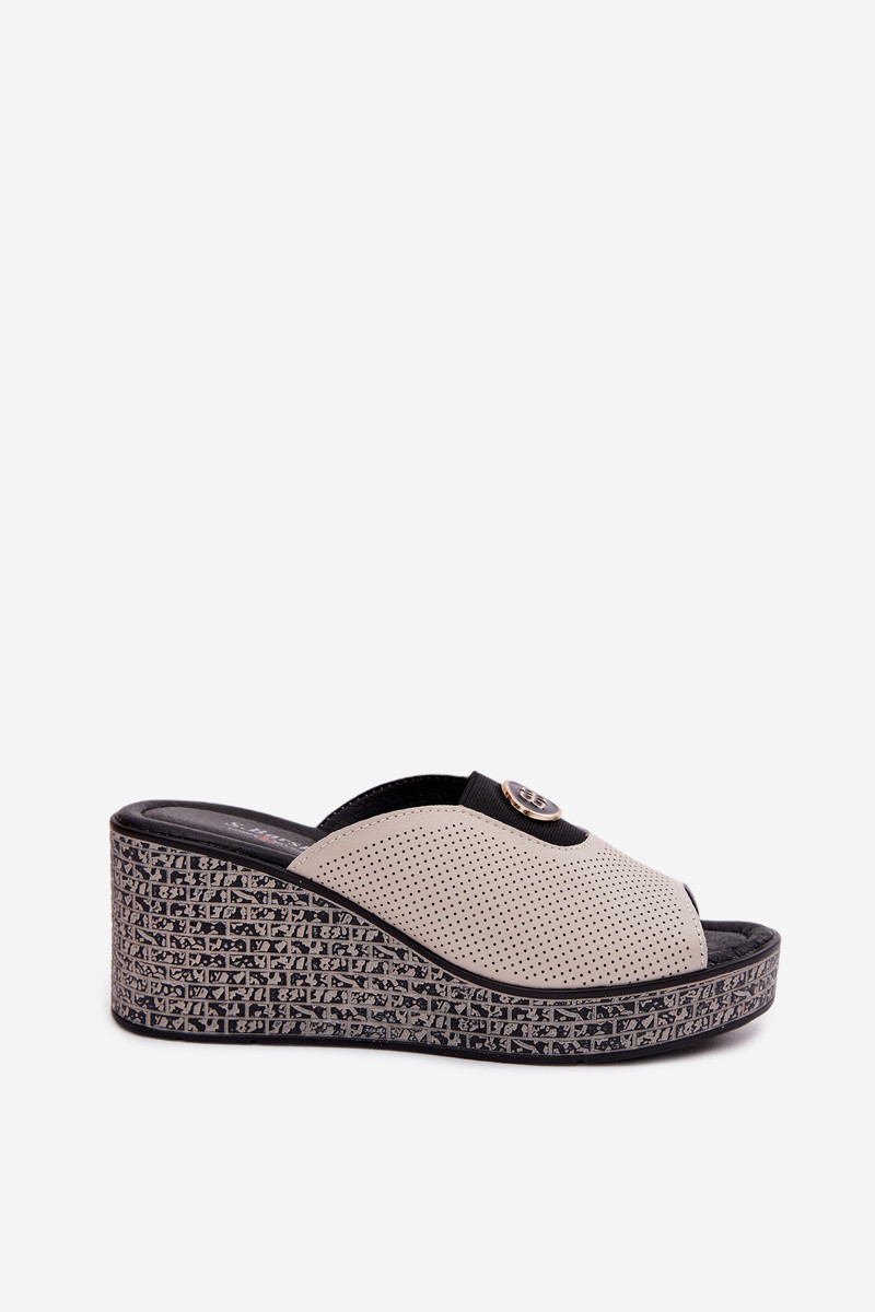 Skórzane Klapki Na KoturniewithOzdobą S.Barski LR61-7011 Białe