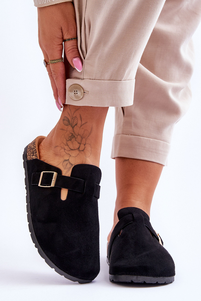 Zamszowe Klapki Na Korkowej Platformie Czarne Vellma