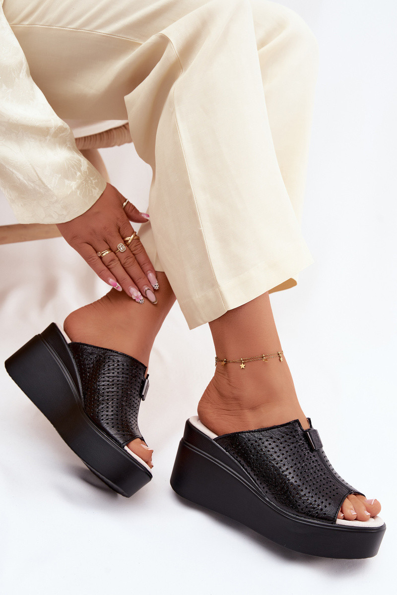 Klapki DamskiewithNaturalnej Skóry Na Koturnie Vinceza 95392 Złote