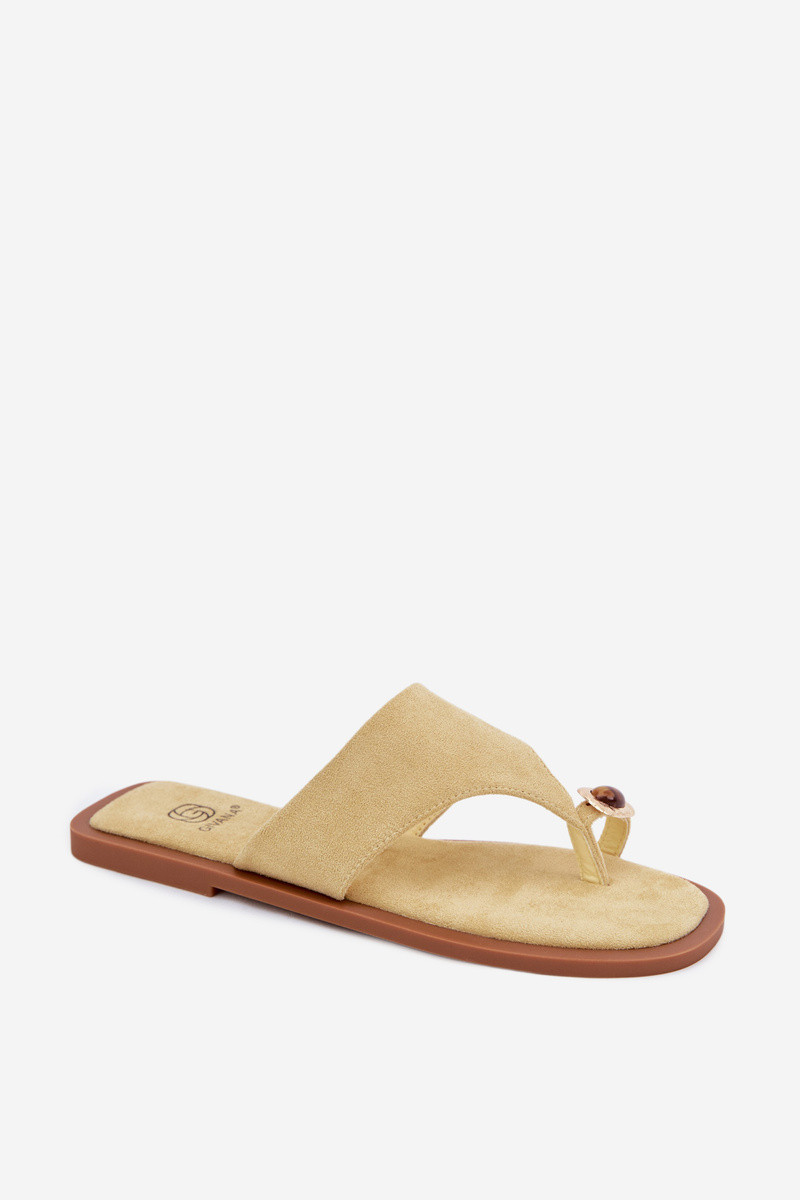 Damskie klapki z ozdobnymi detalami piaskowe Fedira