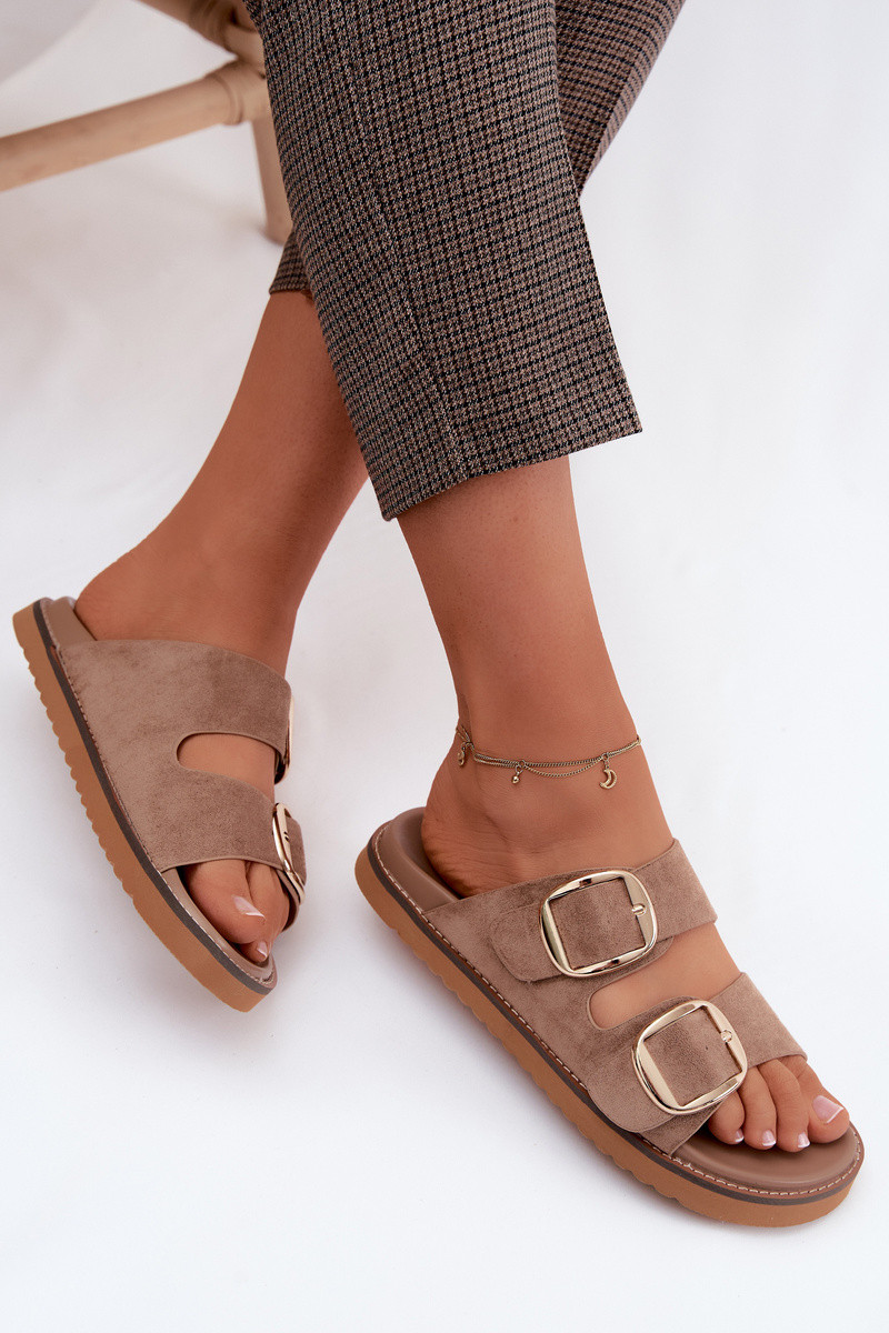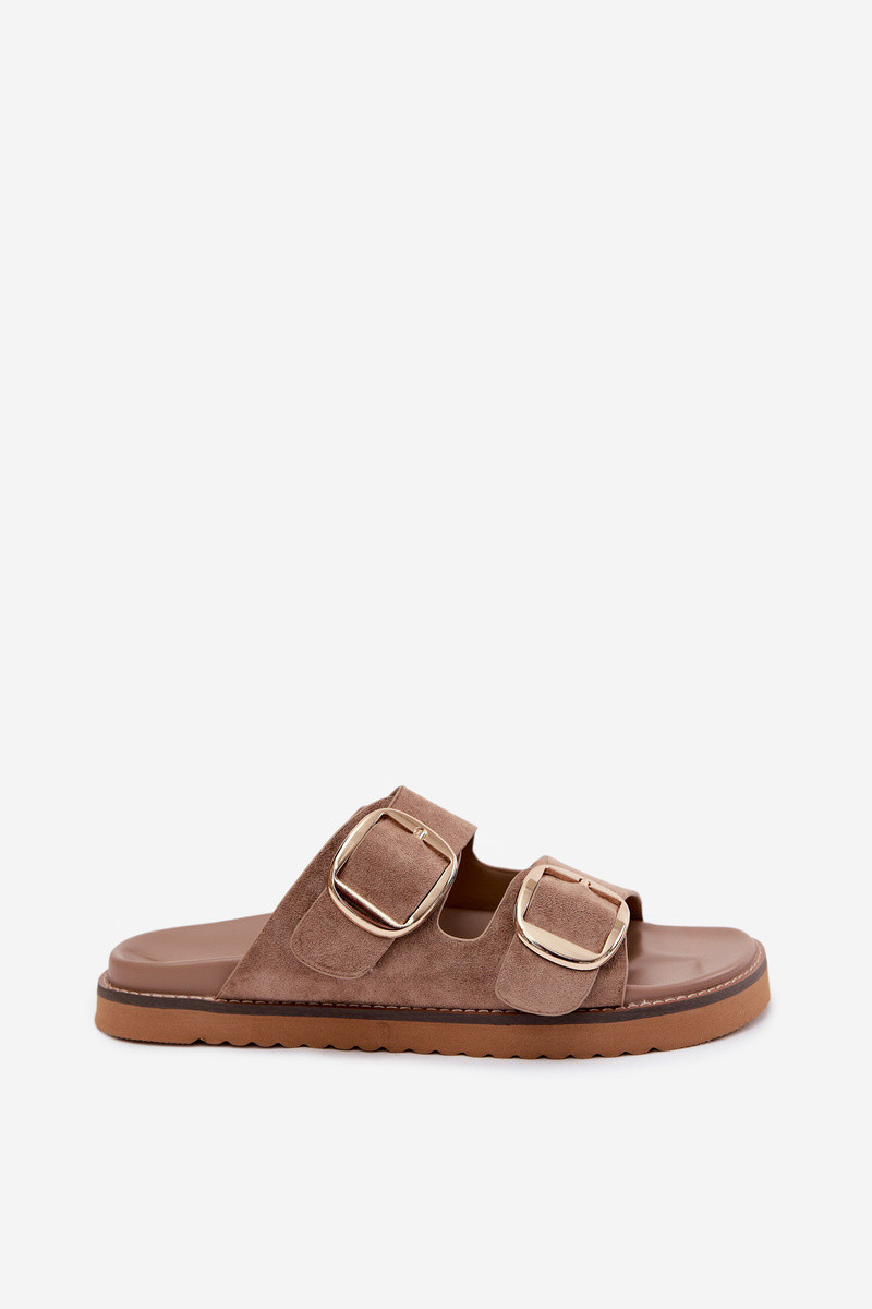 Klapki DamskiewithImitacji Zamszu Złote Klamry Camel Averia