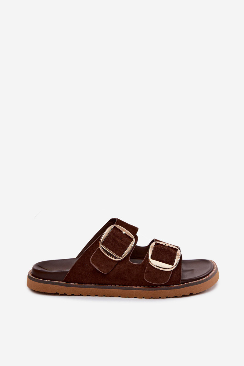 Klapki DamskiewithImitacji Zamszu Złote Klamry Czekoladowe Averia