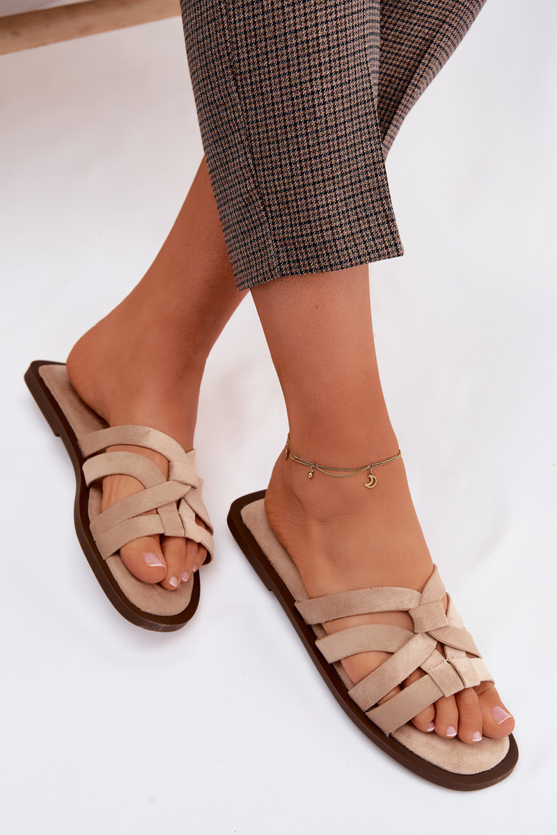 Klapki Damskie PłaskiewithPaskami Imitacja Zamszu Brązowe Calvia