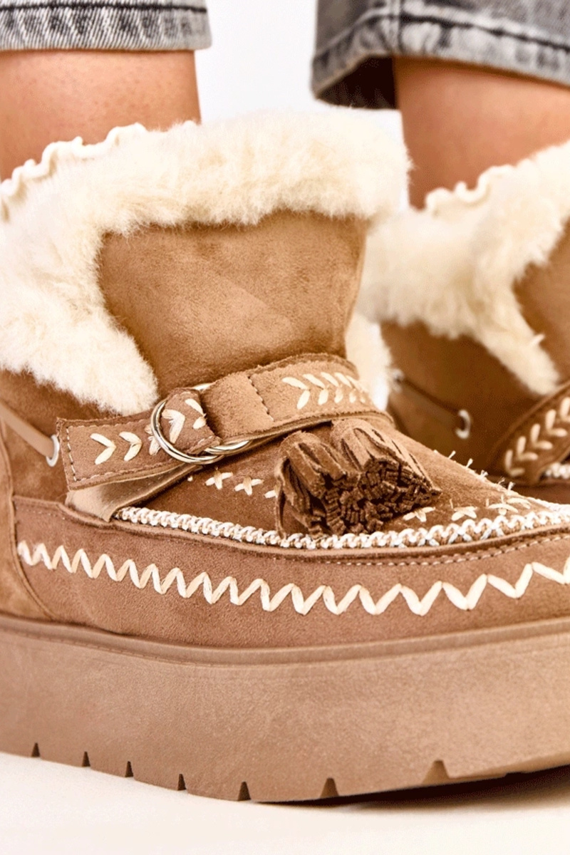 Jasnobrązowe śniegowce na platformie z frędzlami Maurisa