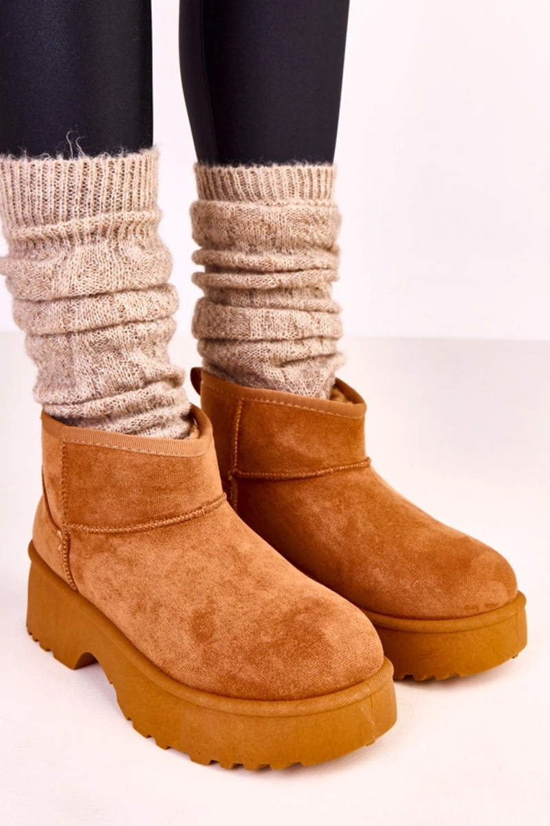 Brązowe niskie śniegowce z ekozamszu Joshua