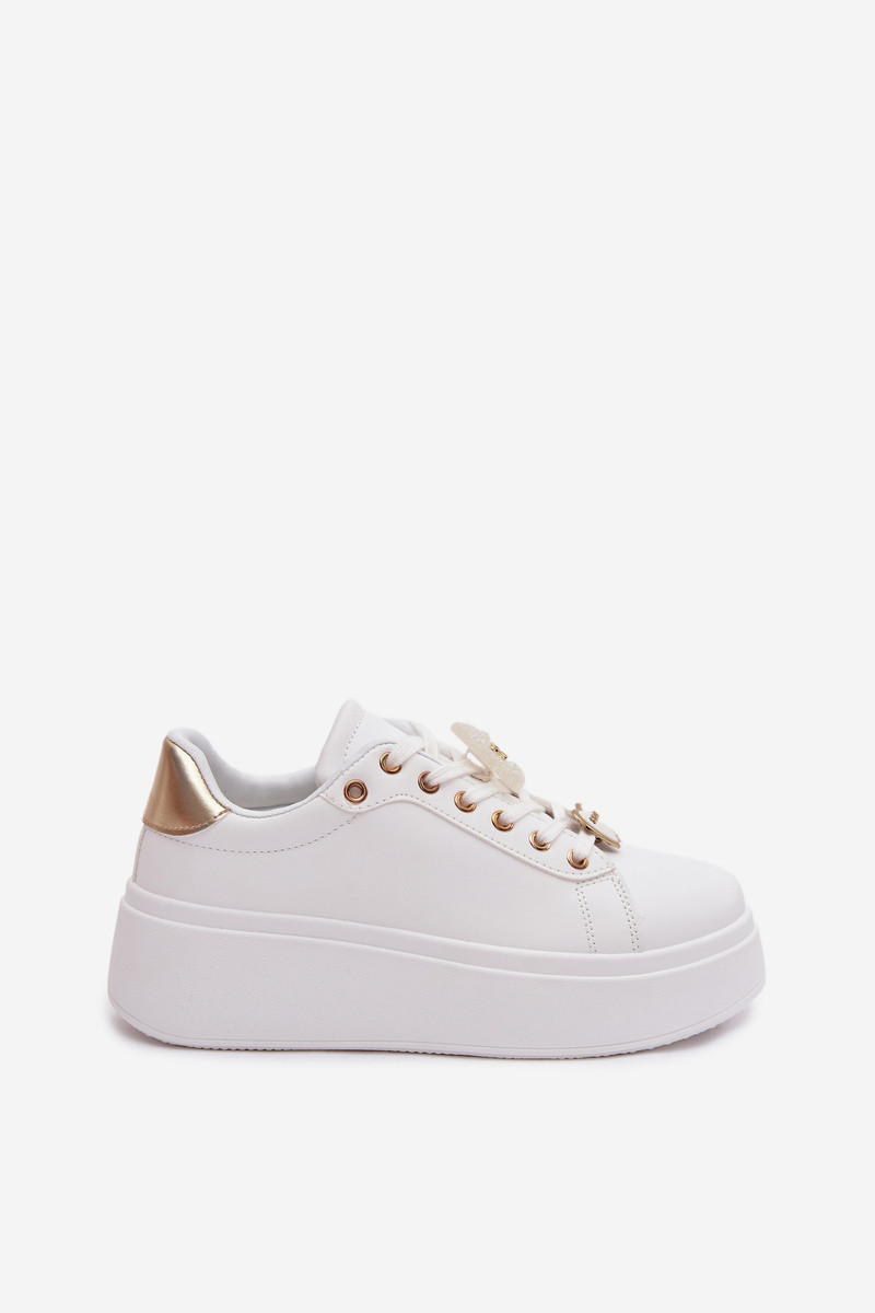 Sneakersy Damskie Na PlatformiewithPrzypinkami Miś Serce Biało-Złote Selorissa