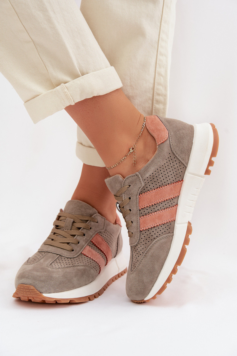 Sneakersy DamskiewithNaturalnego Zamszu Beżowo-Żółte Marceline