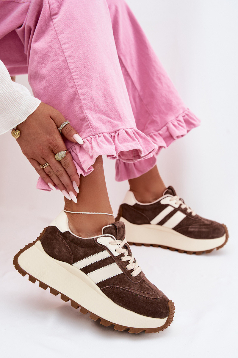 SneakersywithZamszu Na Masywnej Platformie D&A GR61-5986 Czekoladowe